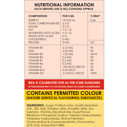 VITAMIN B36.75 GM ,ZINC4.25 MG, VIT B51.25 MG,VIT B2.6,VIT B1.5
